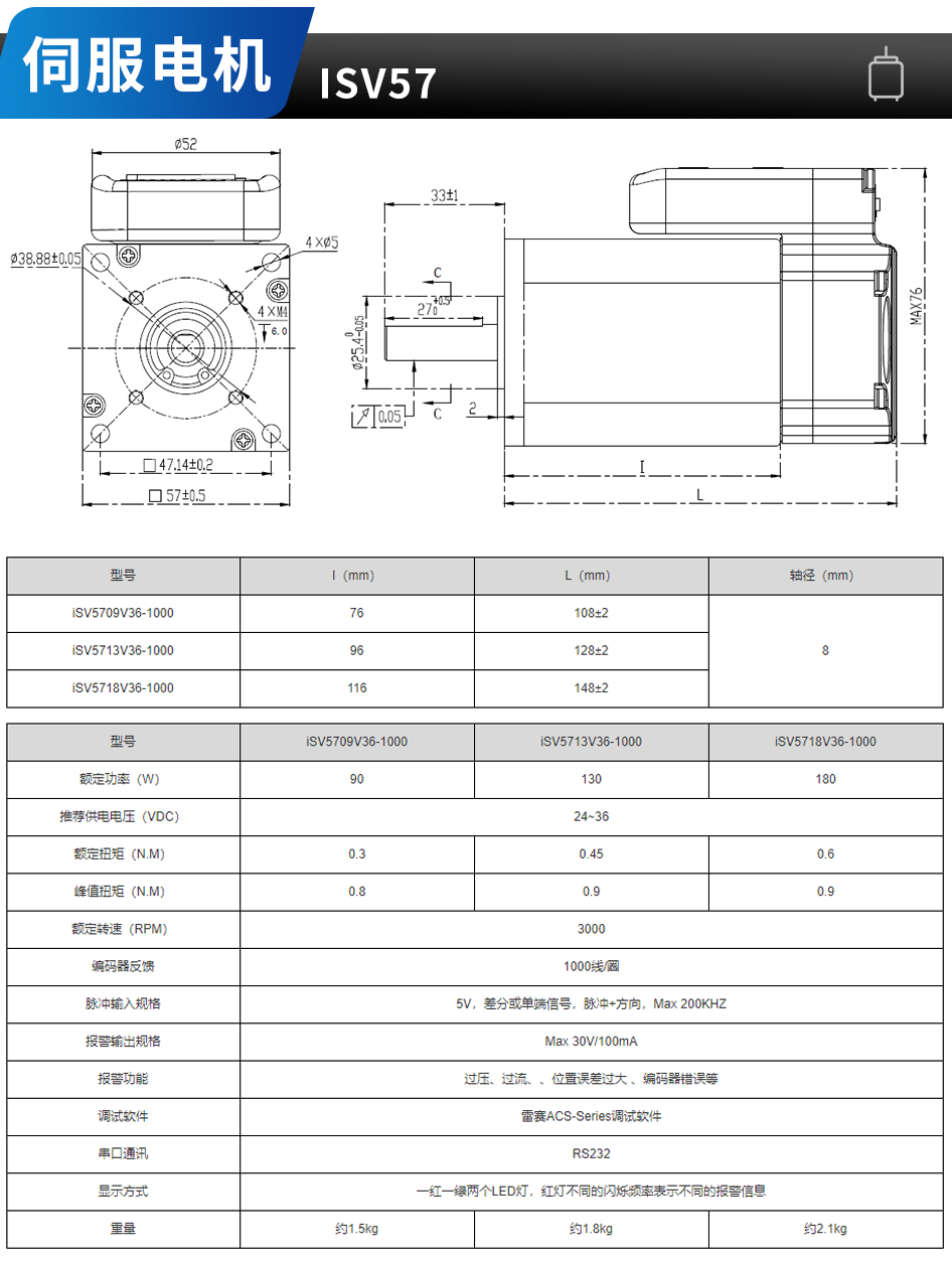 雷赛伺服电机系列 带键槽/光轴/抱闸