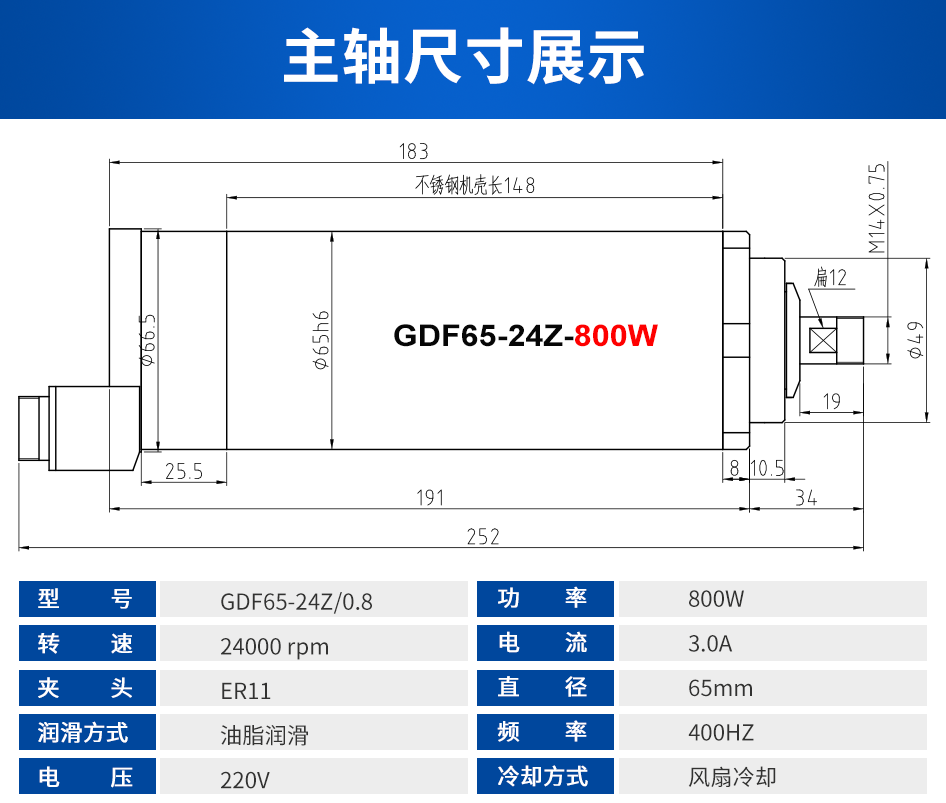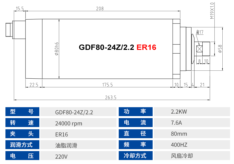 前程HQD 圆形风冷主轴系列 0.8KW-2.2KW