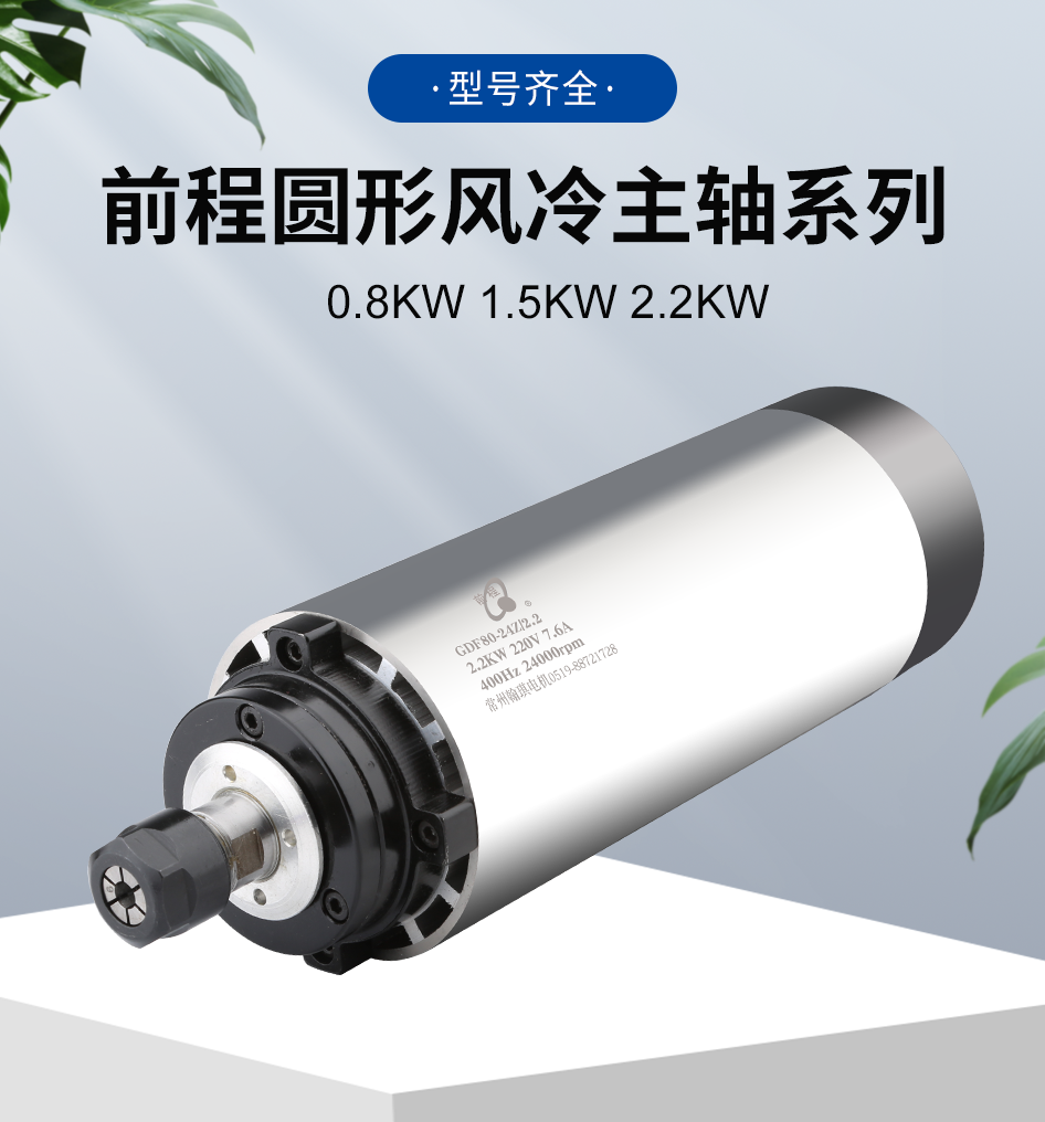 前程翰琪HQD 圆形风冷主轴 0.8KW/1.5KW/2.2KW 广告木工雕刻机配件主轴 电主轴