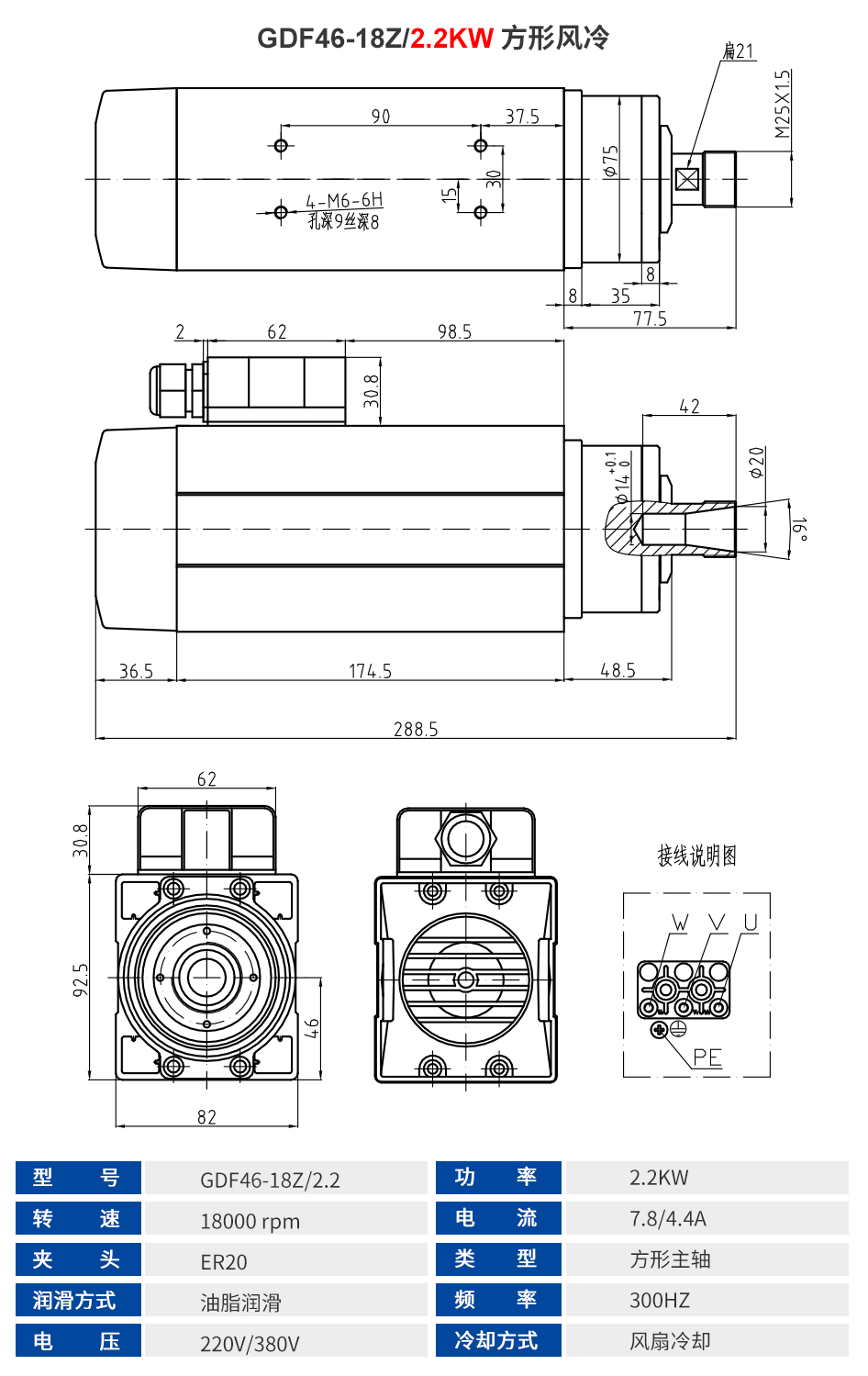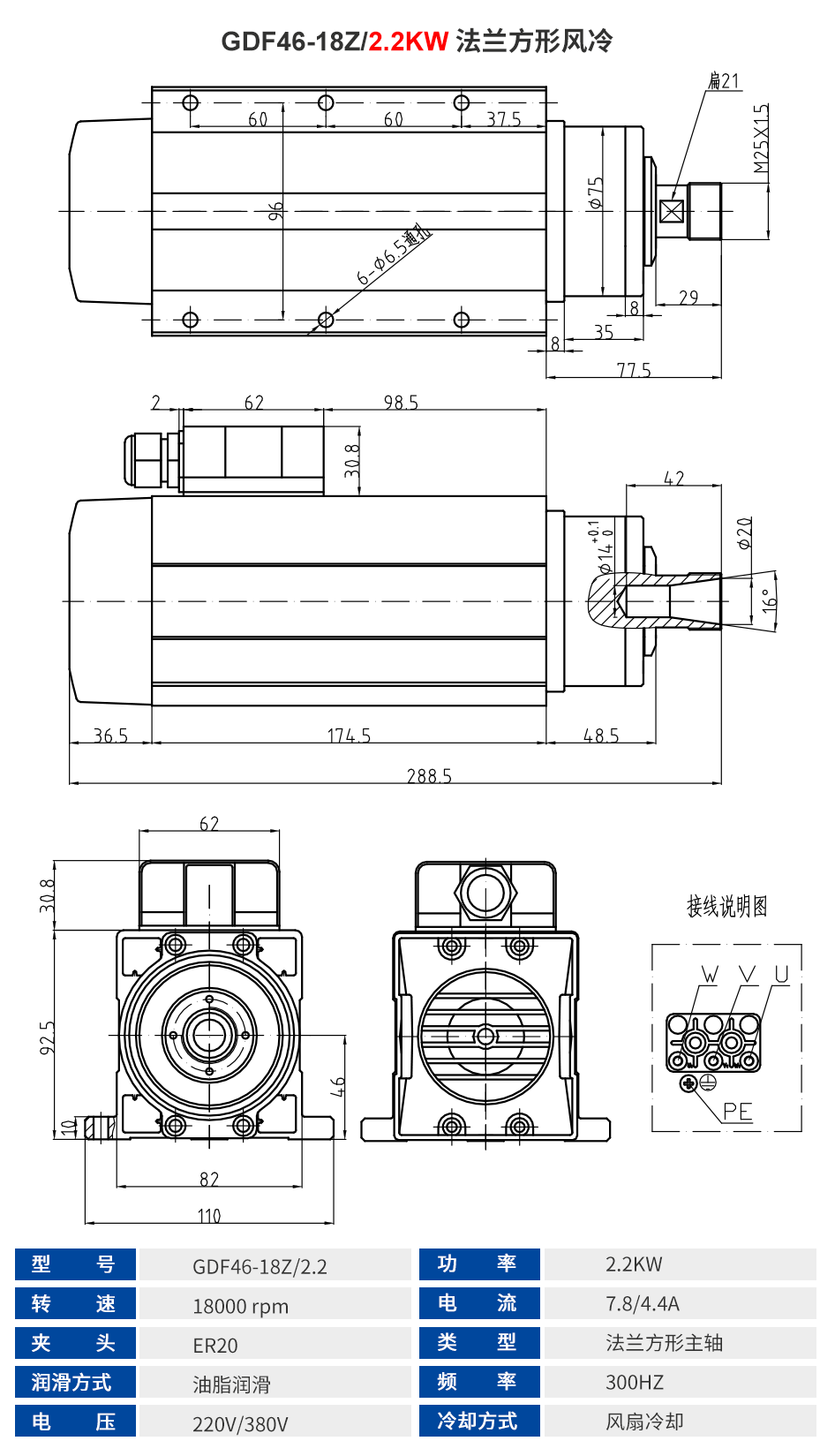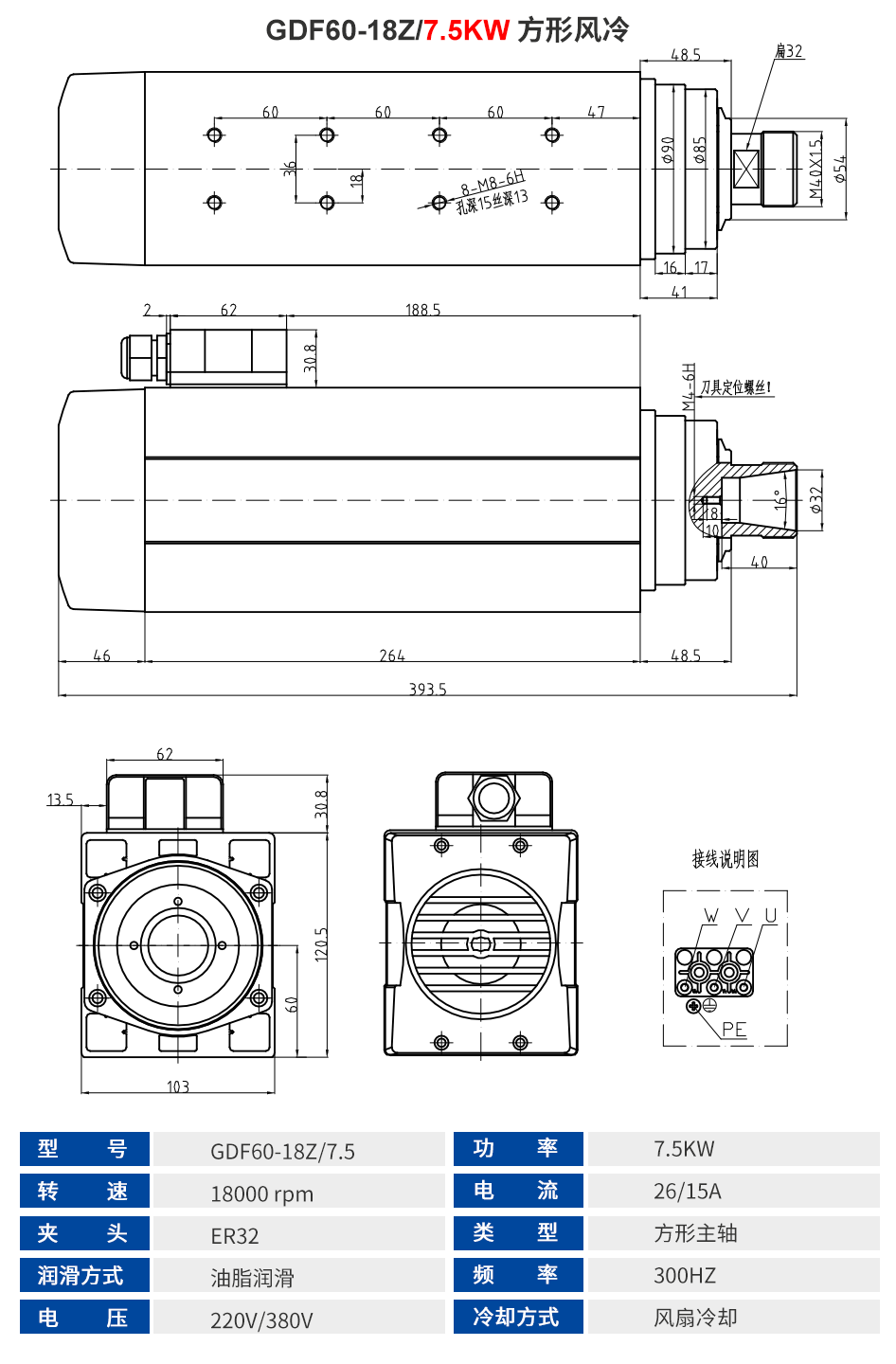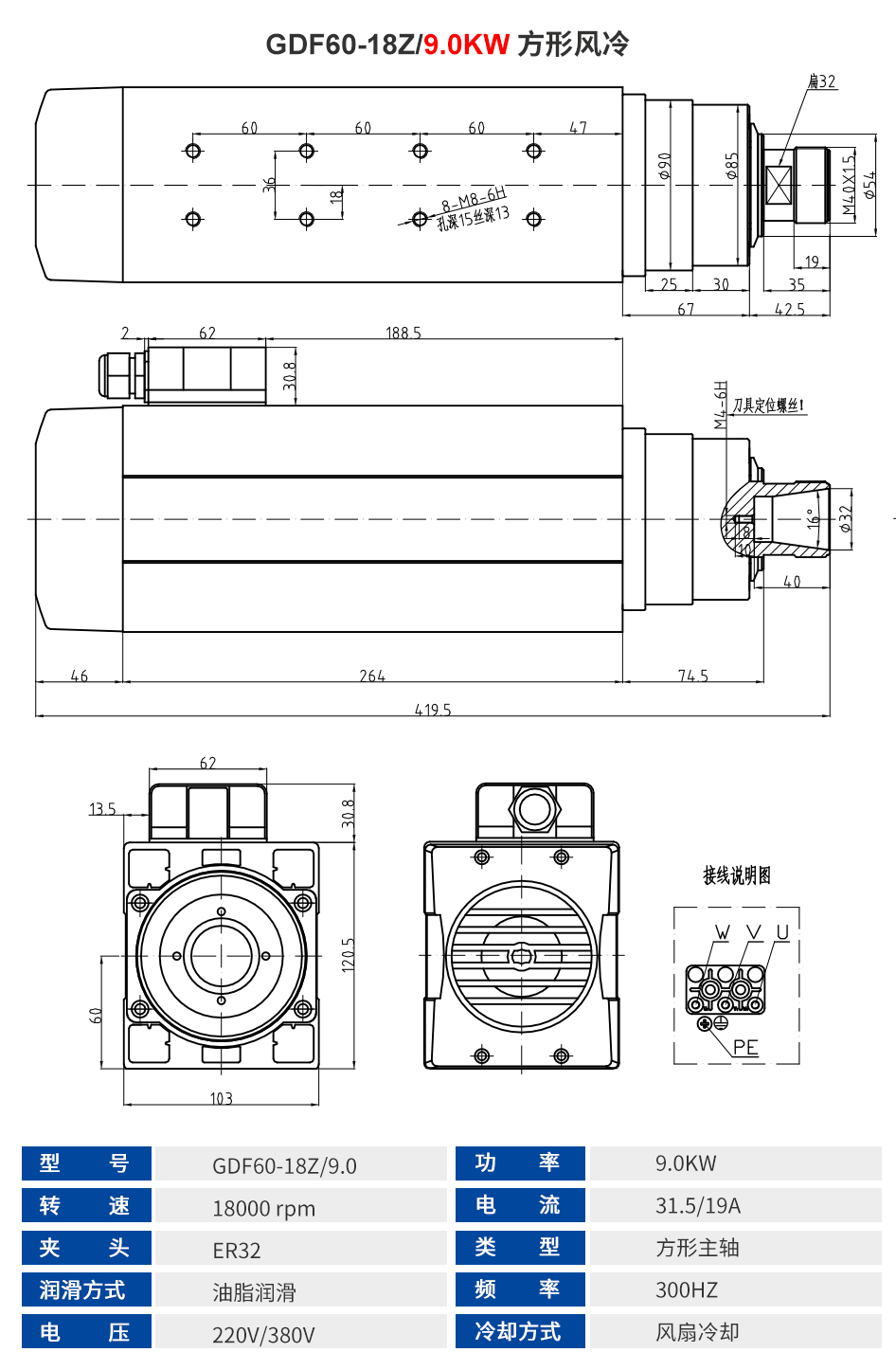 前程HQD 方形风冷主轴系列 1.5KW-9KW