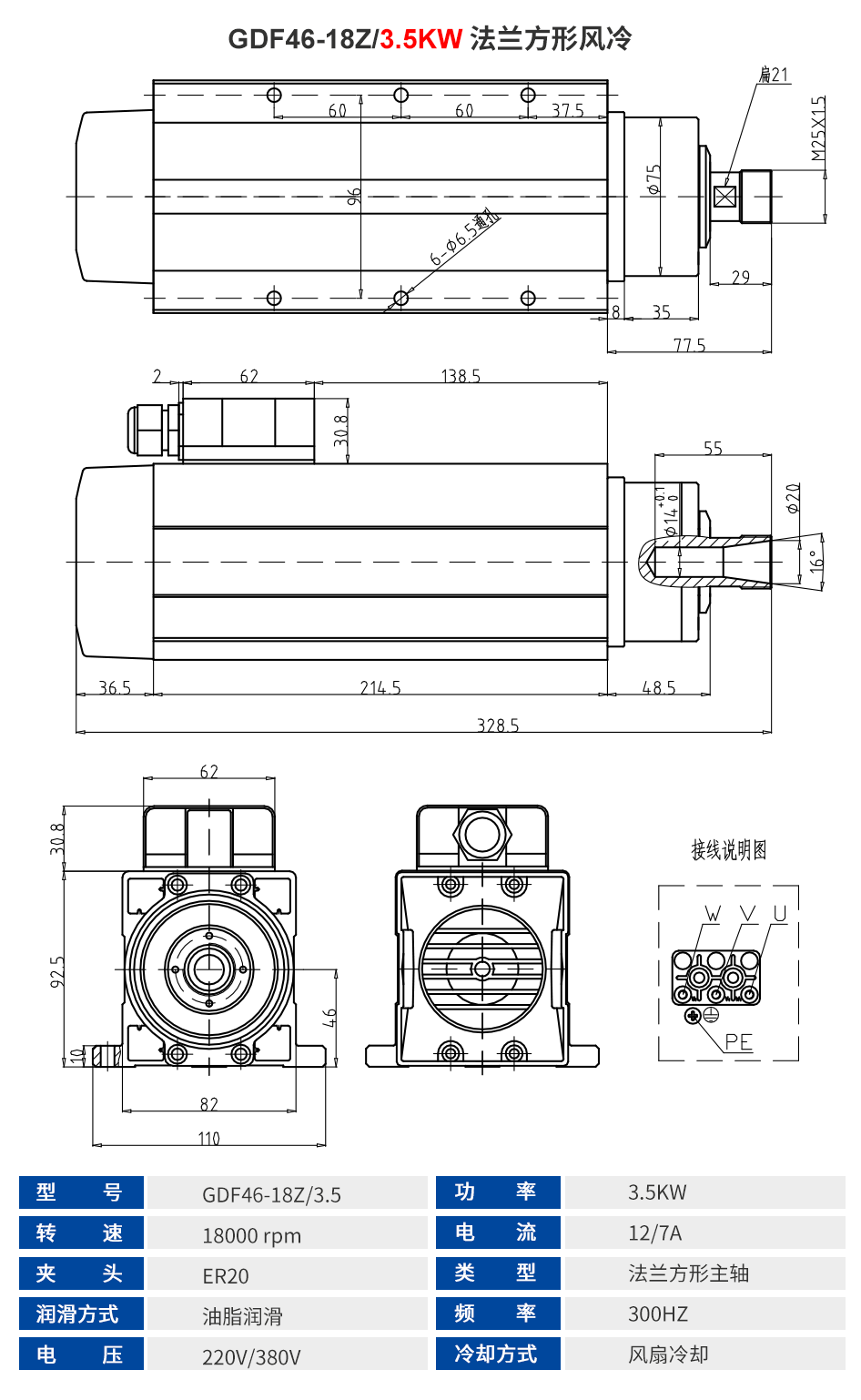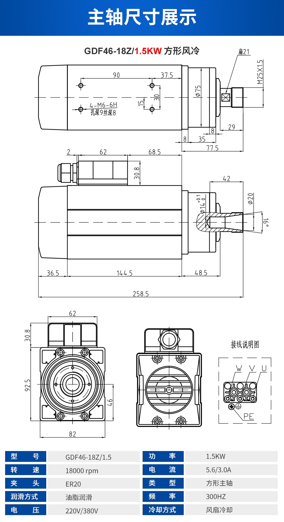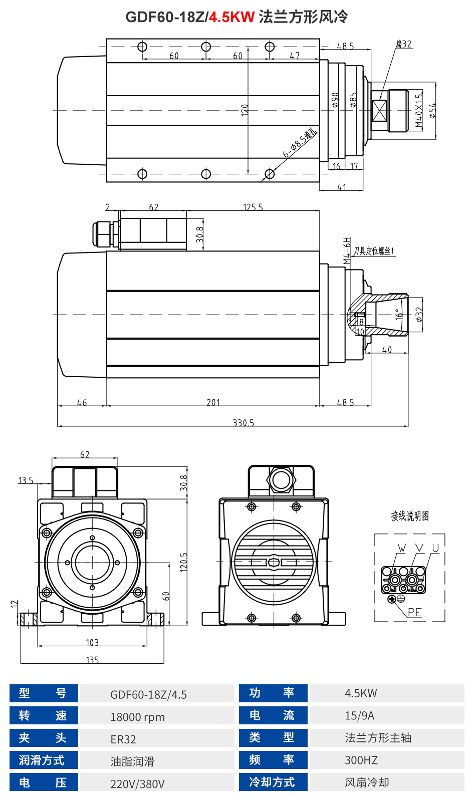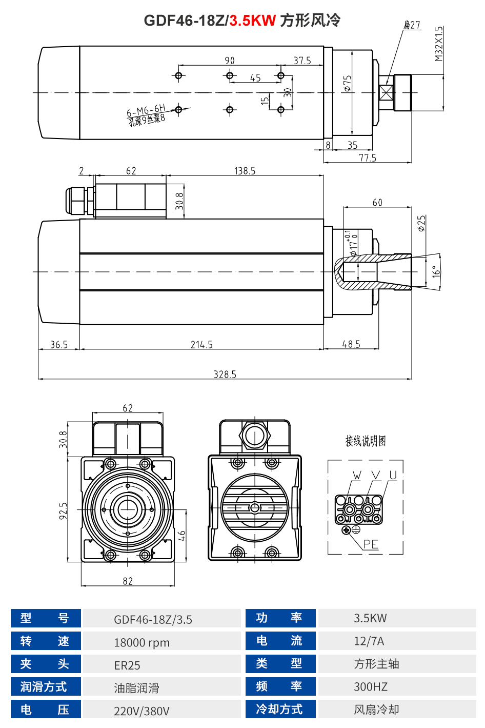 前程HQD 方形风冷主轴系列 1.5KW-9KW