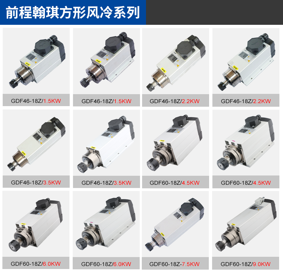 木工雕刻机配件电主轴 主轴电机 前程翰琪HQD 1.5/2.2/3.5/4.5/6.0/7.5/9.0KW方形风冷
