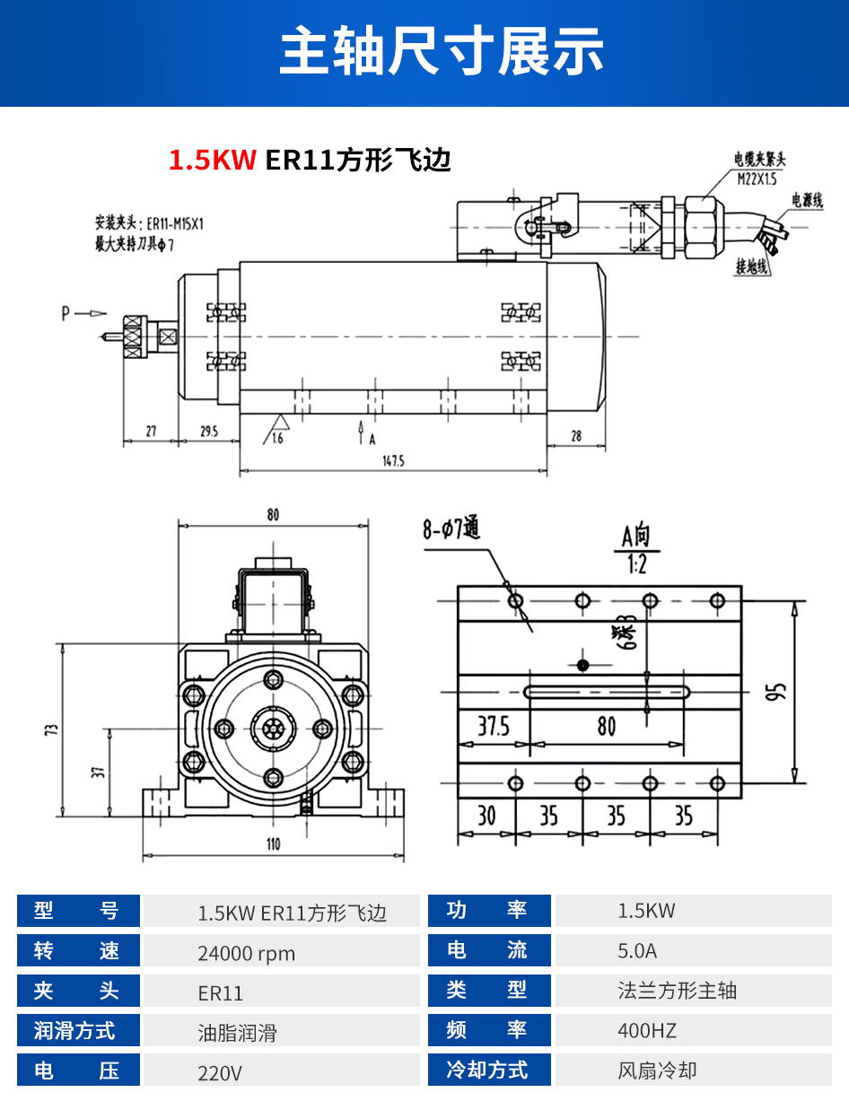 长川 修边主轴电机系列 0.3KW-2.2KW