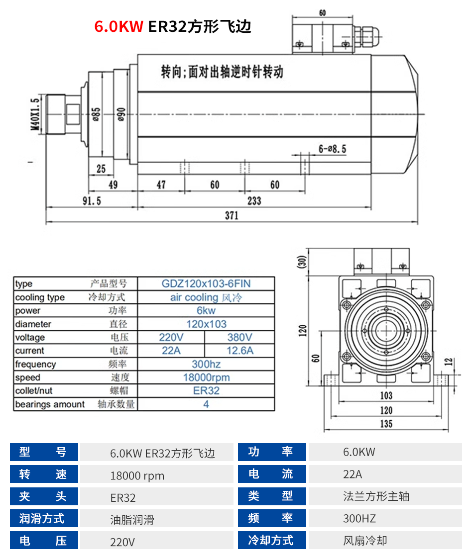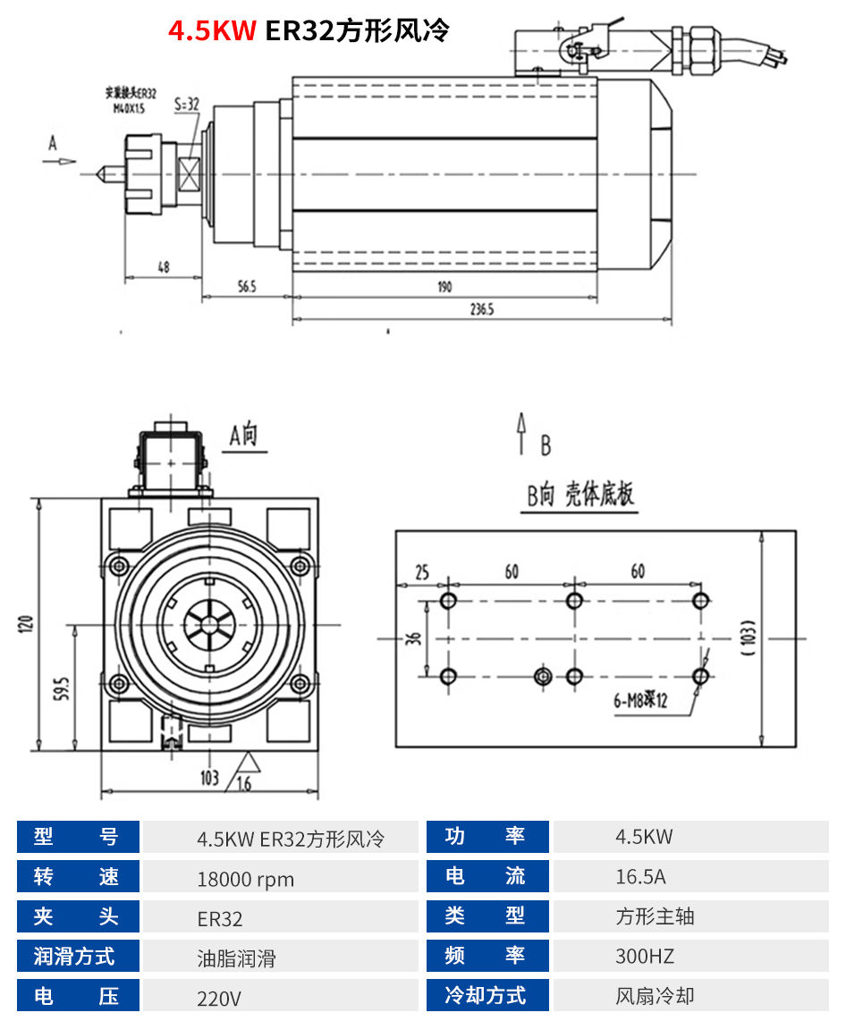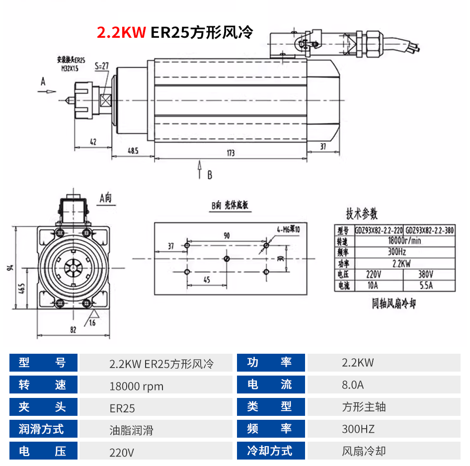 顺通 方形风冷主轴系列 2.2KW-6.0KW