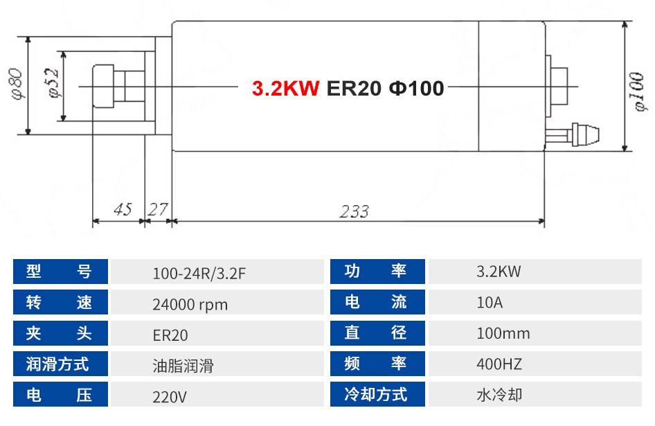 弘阳 圆形水冷主轴系列 0.8KW-4.5KW