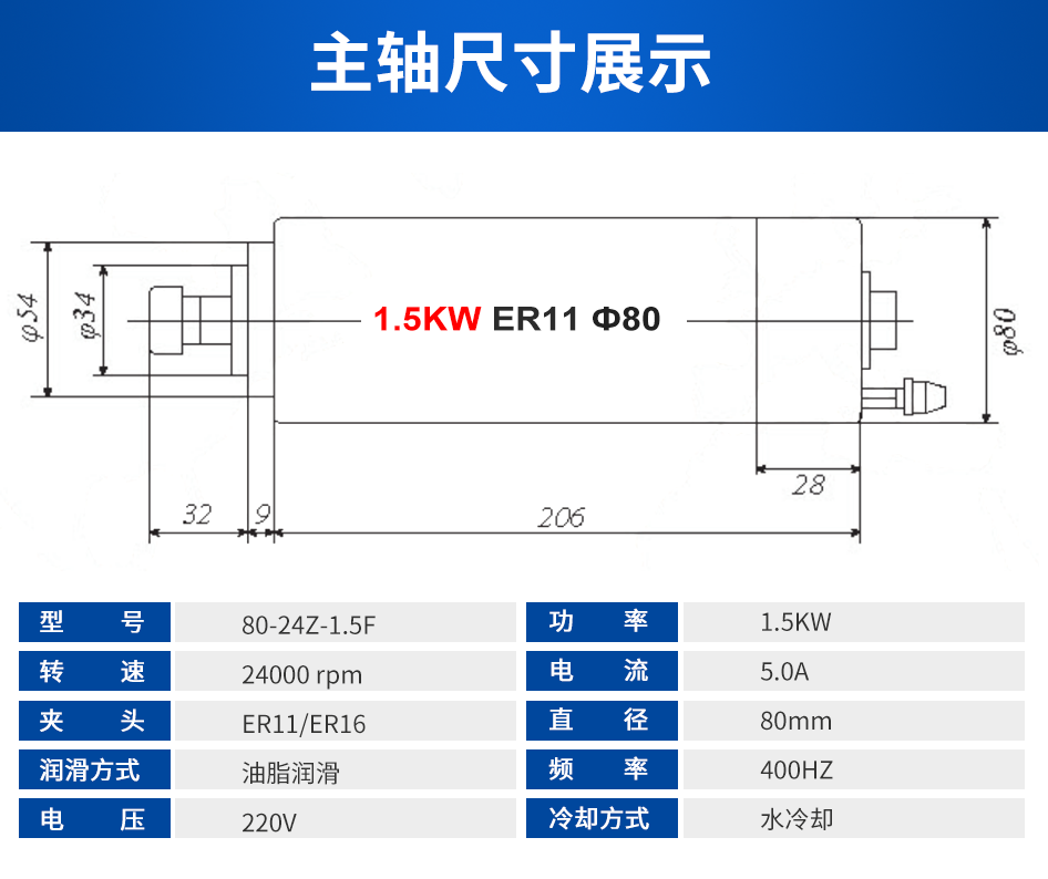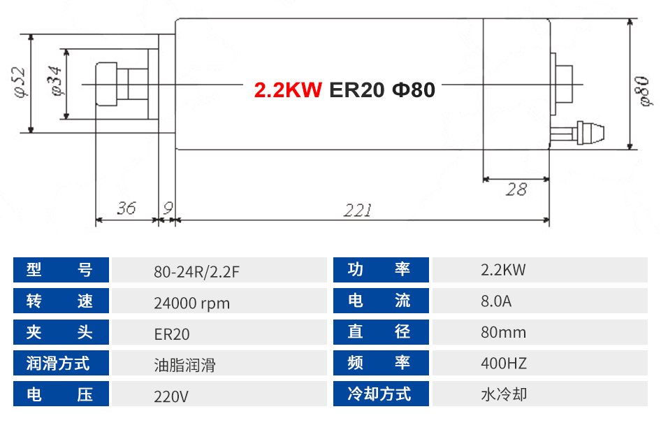 长川 修边主轴电机系列 0.3KW-2.2KW
