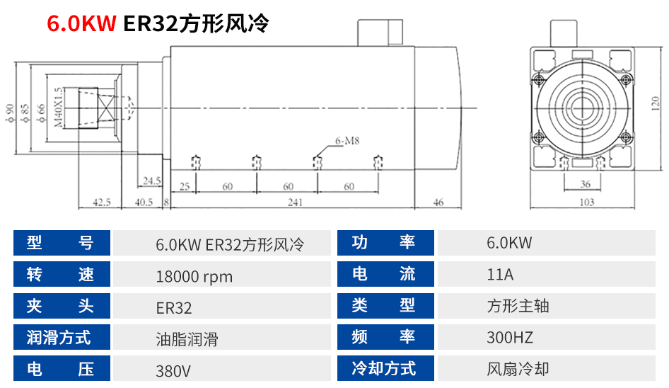 长川 方形风冷主轴系列 2.2KW-6.0KW