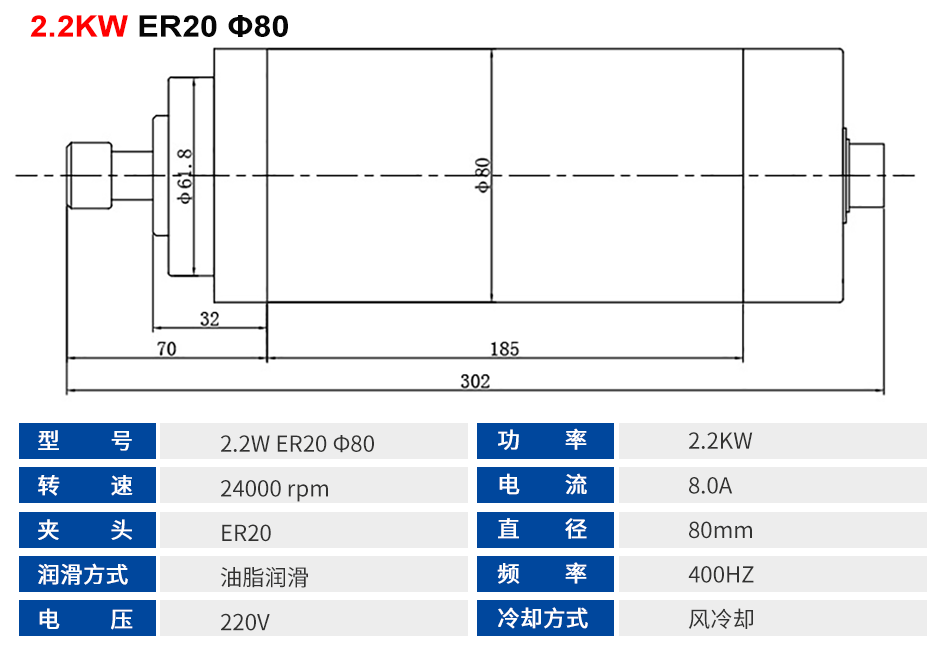 长川 修边主轴电机系列 0.3KW-2.2KW