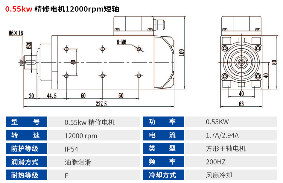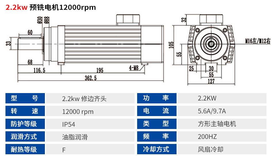长川 修边主轴电机系列 0.3KW-2.2KW